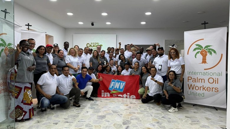 Ook het internationale netwerk van palmoliewerkers, IPOWU, werkt aan het versterken van vakbonden op verschillende niveaus. In 2024 kwamen de deelnemers uit vier continenten samen in Colombia om ervaringen en ideeën uit te wisselen en om samen te werken. Daarnaast lieten we een onderzoek naar het gebruik van agro-chemicaliën op de palmolieplantages uitvoeren. De uitkomst was niet verrassend: op veel palmolieplantages worden werkers hiertegen niet goed beschermd. Met alle consequenties van dien voor hun gezondheid. Het netwerk is op allerlei fronten aan de slag gegaan met de bevindingen van het onderzoek, wat hier en daar al geleid heeft tot concrete verbeteringen Het onderzoek is ook besproken met certificeringsorganisatie RSPO en met diverse bedrijven die in Nederland palmolie verwerken.